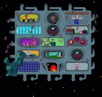 Особенности игры - Строительство комической станции в космосе - Удовлетворение потребностей колонистов - 14 уникальных модулей - 5 ресурсов - 4 случайных события